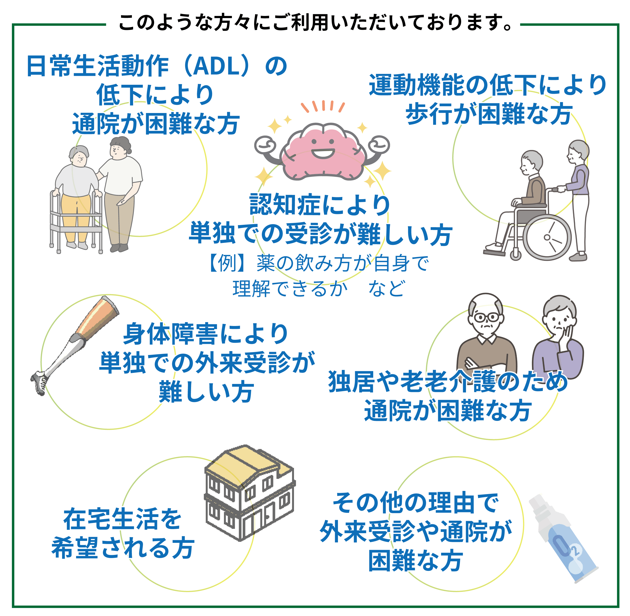 たとえば認知症で移動はできても、自分の症状を伝えられない、診察の内容を理解できない、薬が管理できない方は「通院できている」とは言えません。