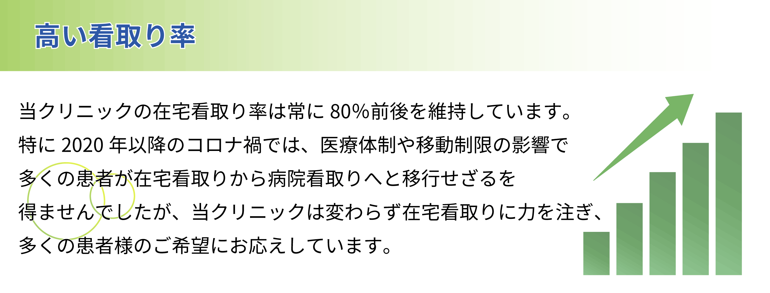 入居率の上昇、入居期間の延長、看取り件数の増加、介護度の上昇といったポジティブな変化が見られます。